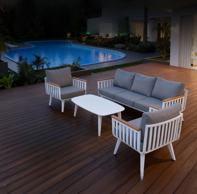 פינת ישיבה אלומיניום ועץ דגם בולוניה: יוקרה מודרנית במראה נקי