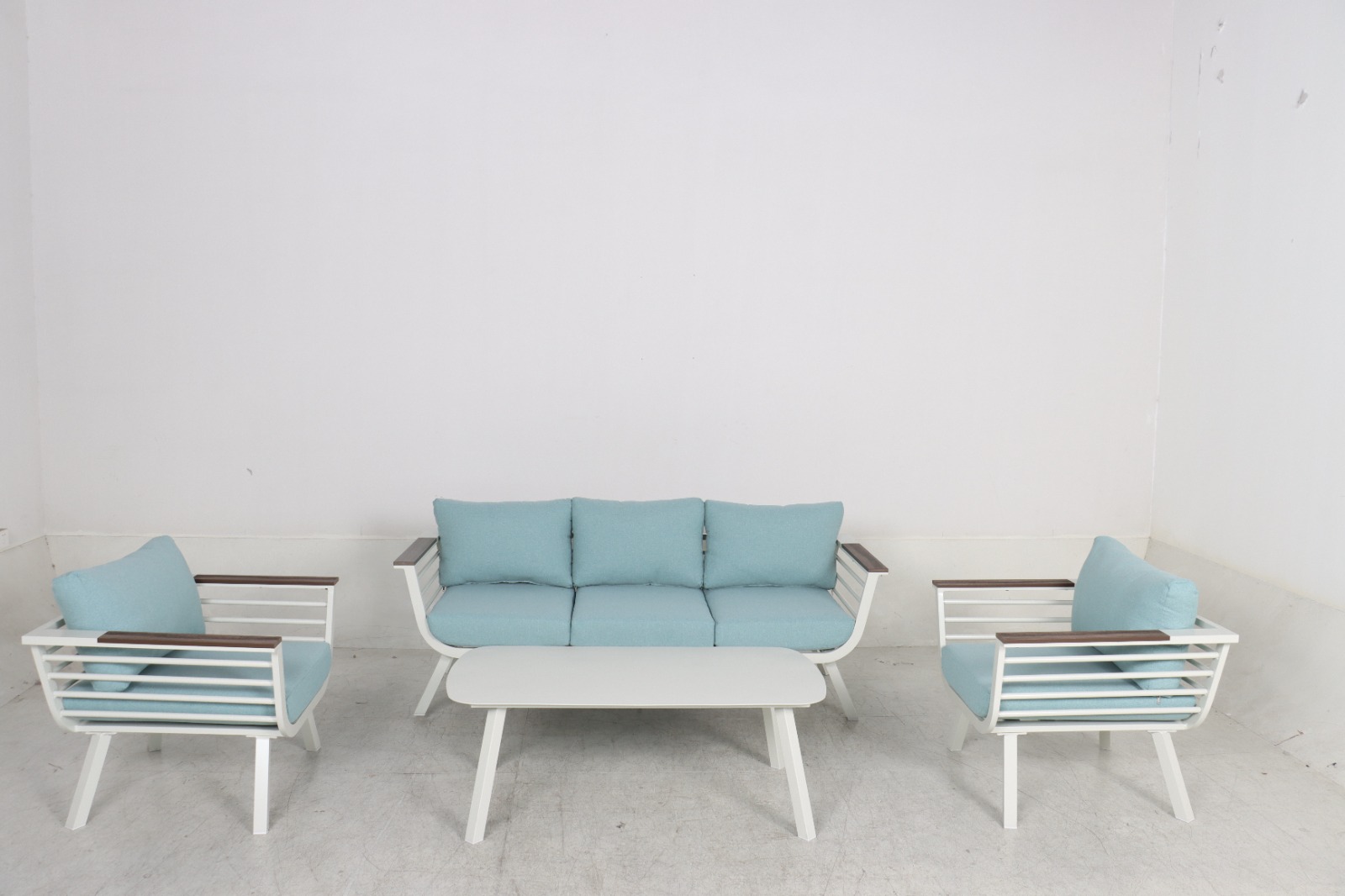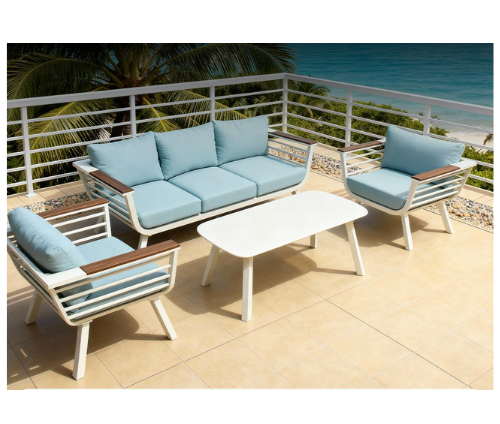 פינת ישיבה למרפסת דגם הוואי תלת מושבית – אלומיניום לבן וטורקיז