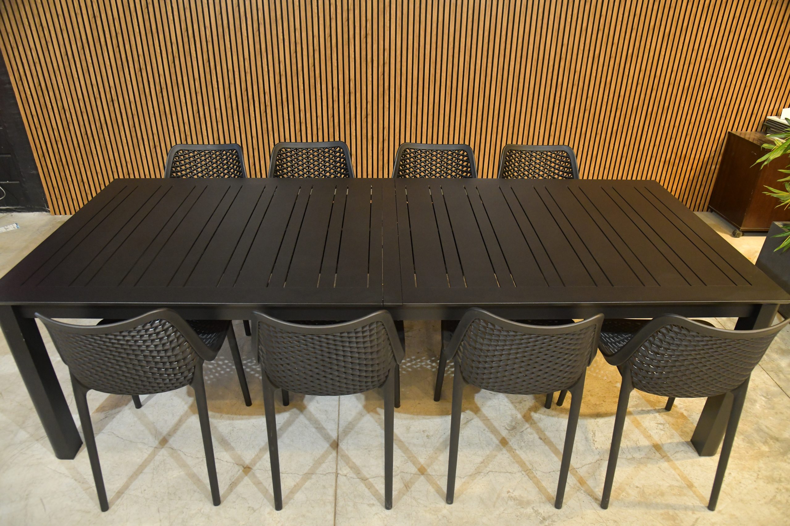 שולחן פינת אוכל אלומיניום נפתח סופר פרימיום *ענק* שחור נפתח ל4 מטר