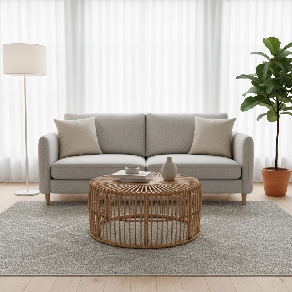 שולחן סלון עגול ראטן – אלגנטיות טבעית במרכז הסלון